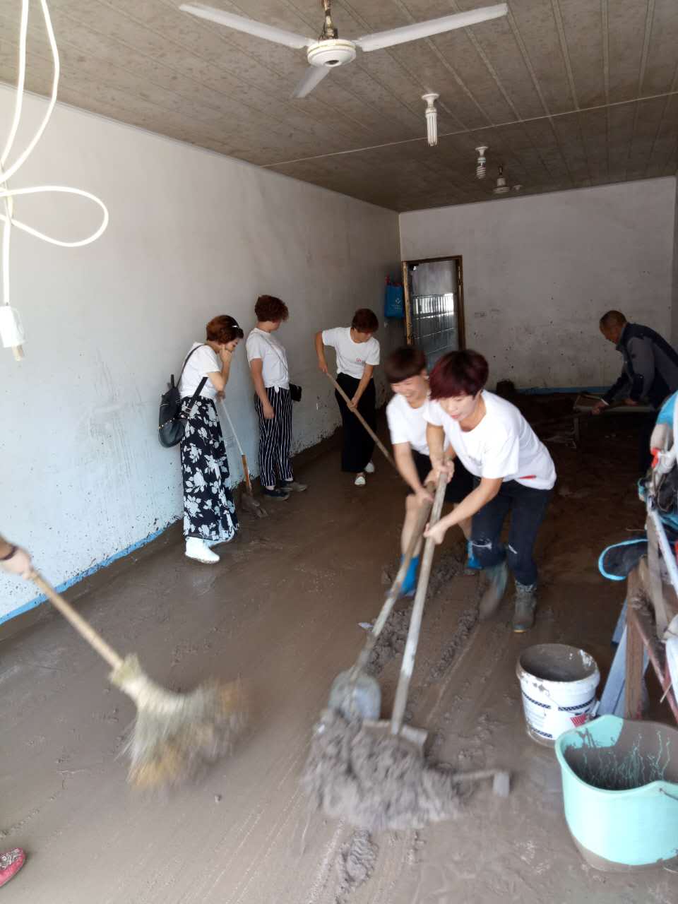 在此次愛(ài)心捐贈(zèng)途中,小組成員們無(wú)意間看到一位70多歲的老爺爺,他正在清理家里地面上洪水沖過(guò)后留下的一層厚泥土,年邁的身體頗為吃力。見此情景,她們立即來(lái)到老爺爺家,拿起鐵鍬、掃帚等工具幫老爺爺打掃和處理家里的泥土。所有成員齊心協(xié)力、汗流浹背,半小時(shí)后將老爺爺家的地面收拾的一干二凈,老爺爺對(duì)浪莎家人的幫助非常感恩,連聲道謝。