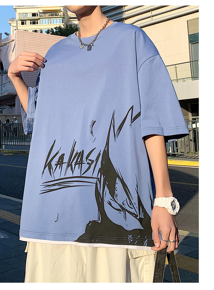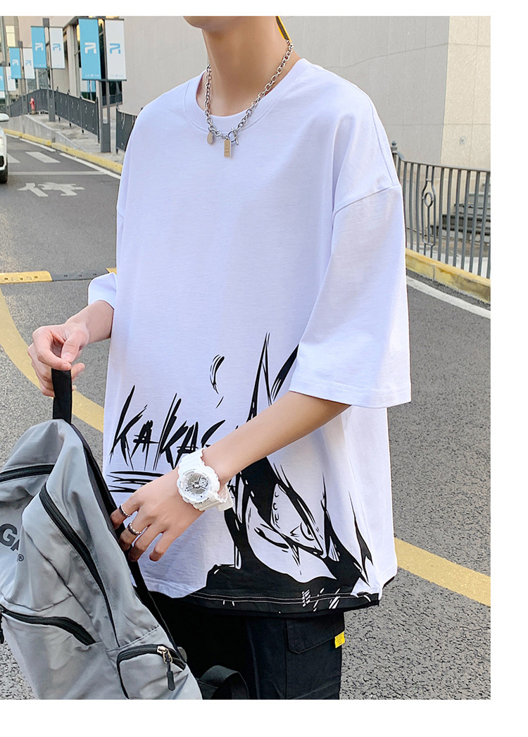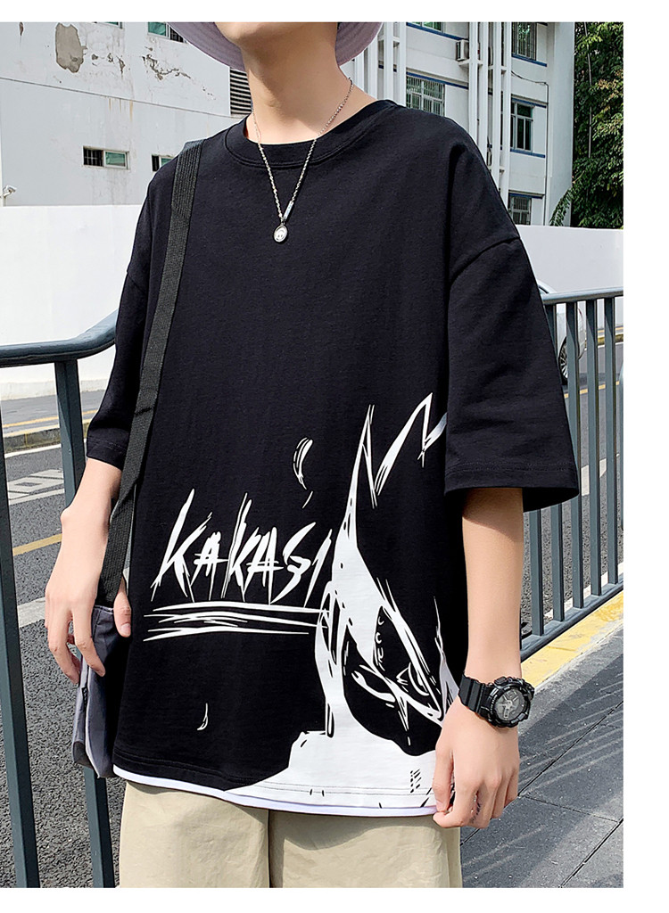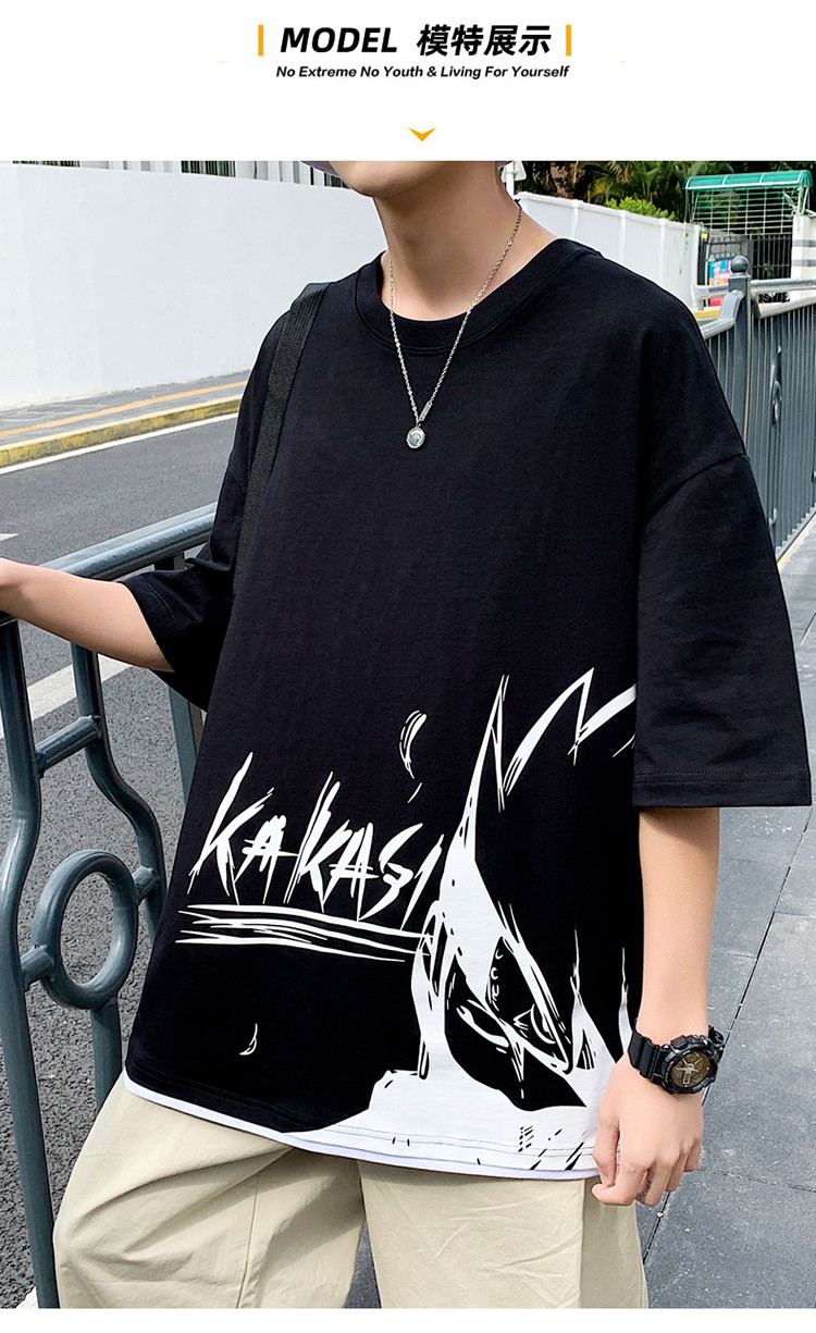純棉舒適】夏季新款男士圓領(lǐng)短袖時尚火影印花半袖T恤