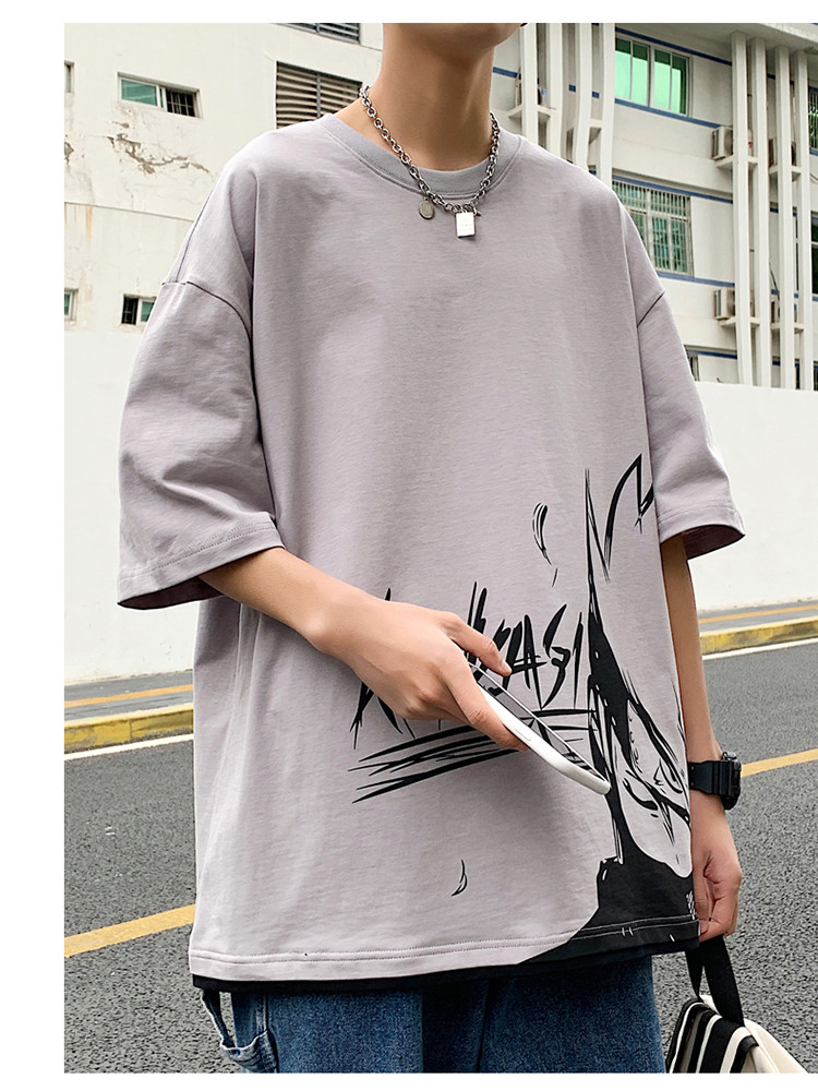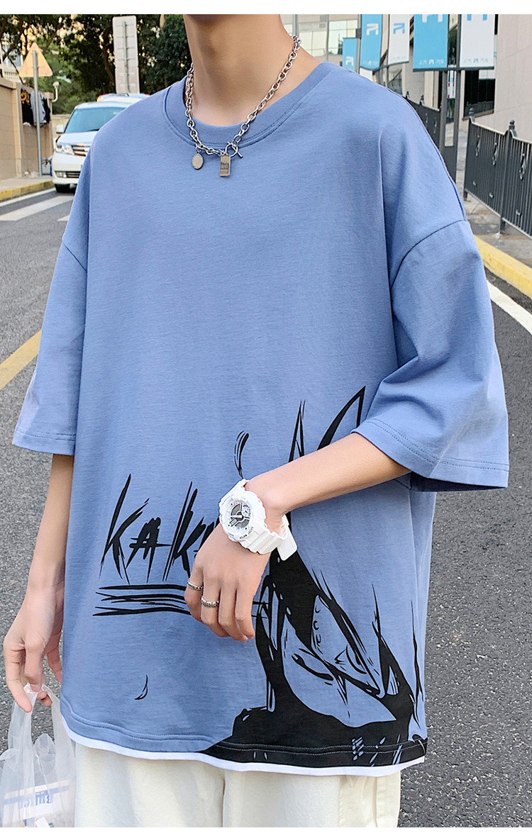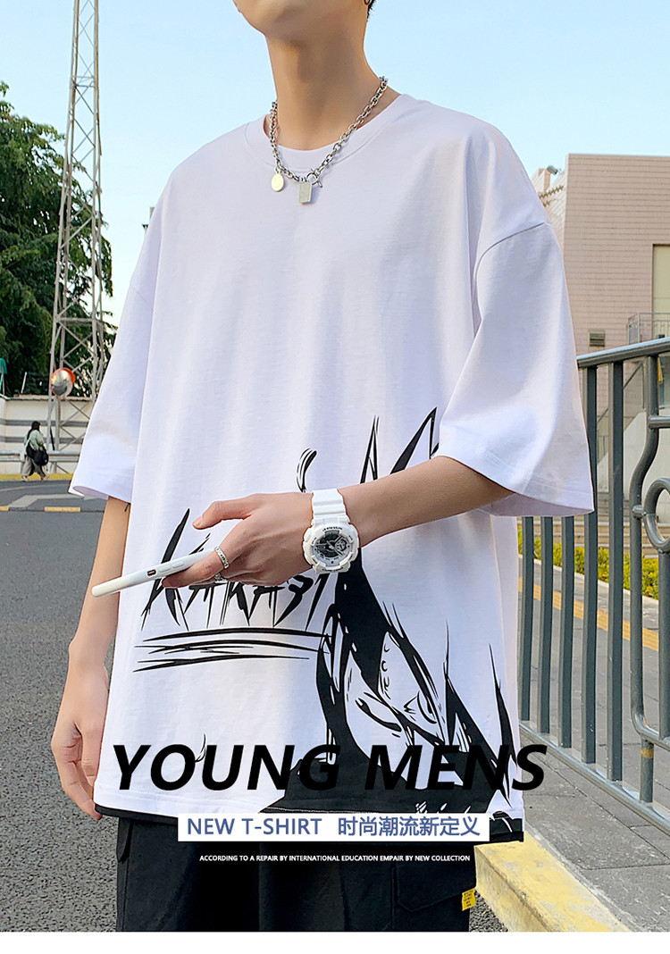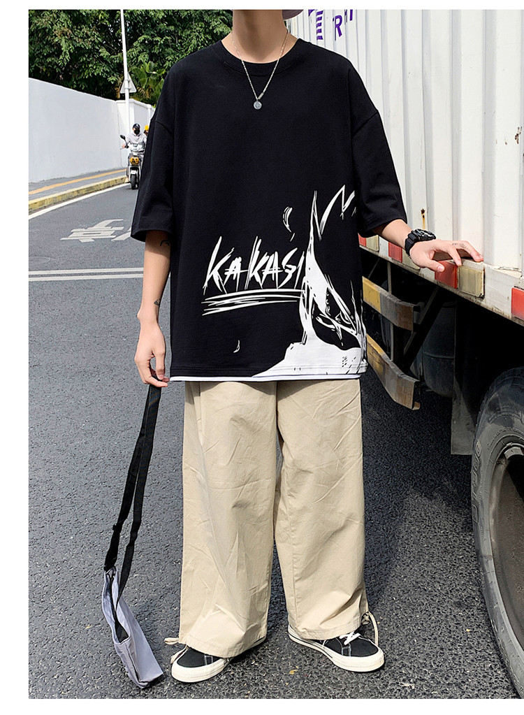 純棉舒適】夏季新款男士圓領(lǐng)短袖時尚火影印花半袖T恤