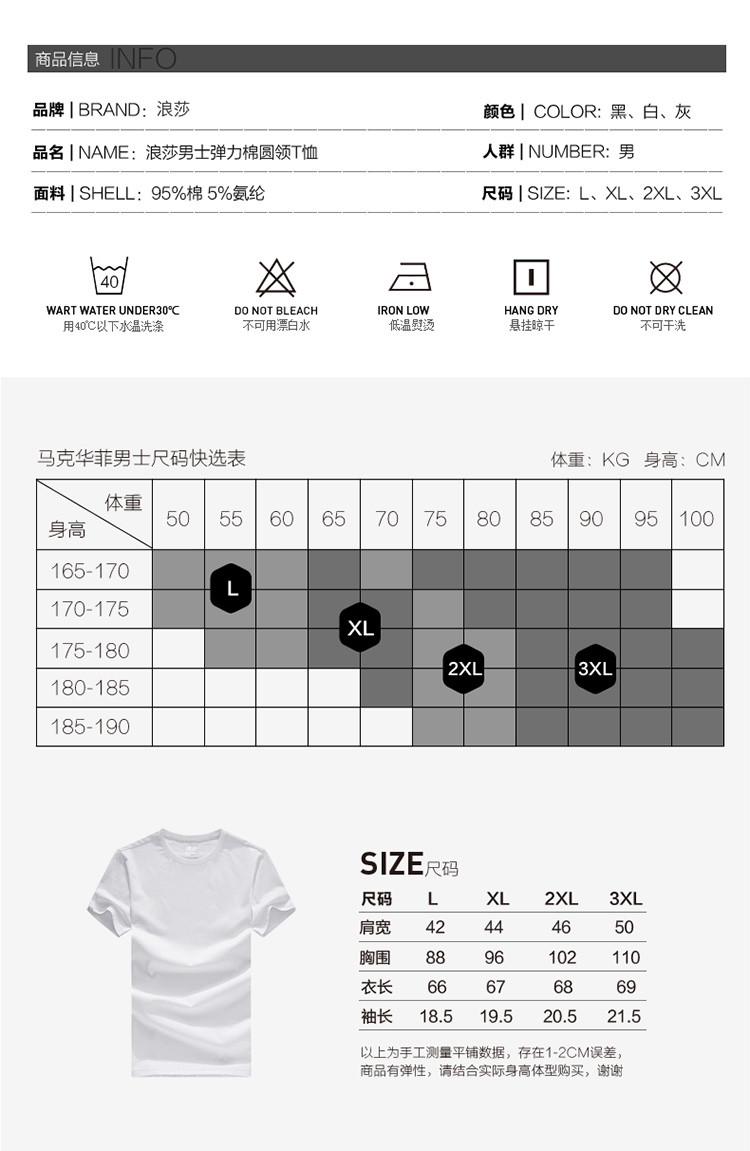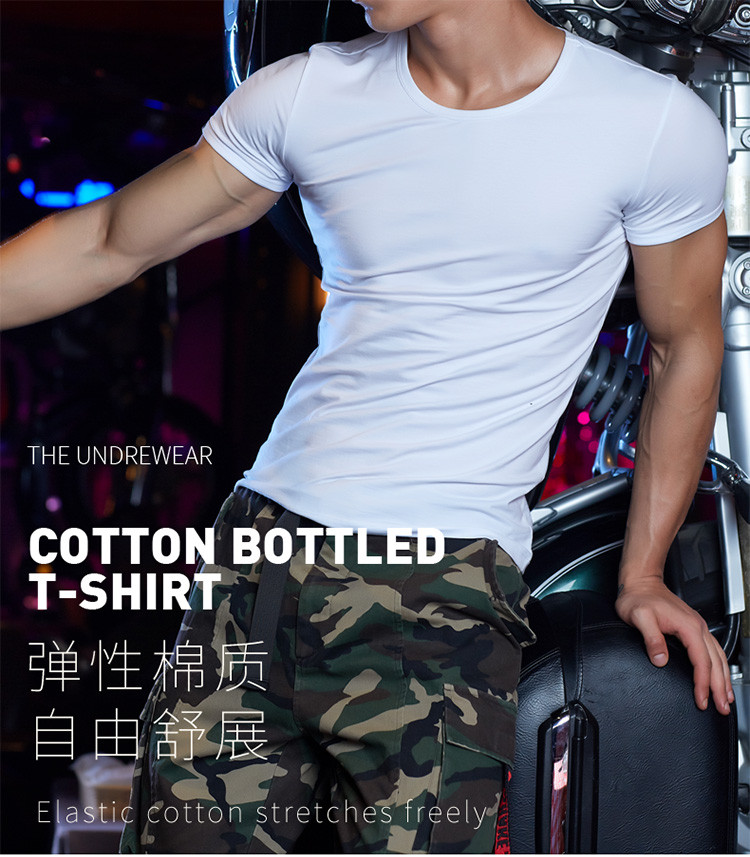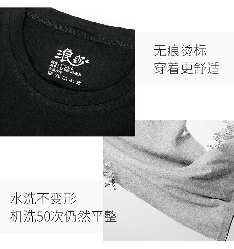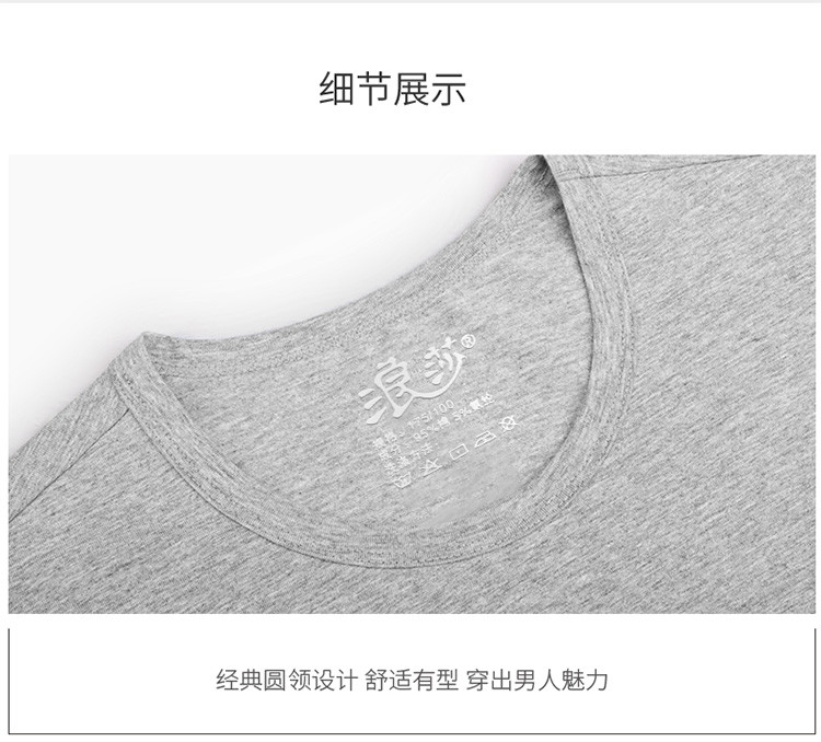 2件浪莎透氣春夏簡(jiǎn)約男士彈力棉圓領(lǐng)運(yùn)動(dòng)T恤領(lǐng)休閑短袖