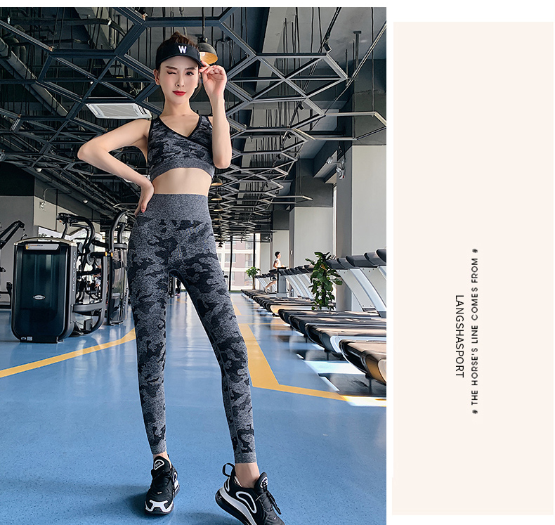 浪莎高腰健身褲女彈力緊身套裝提臀迷彩速干跑步運動收腹瑜伽褲
